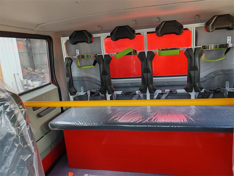 E Жабдықты сақтау: Алдыңғы жабдық бөлмесі толығымен жабық алюминий қорытпасынан жасалған роликті жапқыш есігімен жабдықталған, бұл өрт сөндіру шлангілері, өрт балталары, күректер, қайлалар, өрт сөндіргіштер, өрт сөндіргіштер және шланг көпірлері сияқты әртүрлі өрт сөндіру жабдықтарын ұйымдастырылған түрде сақтауға мүмкіндік береді, бұл өрт сөндірушілердің тез жетуін жеңілдетеді.