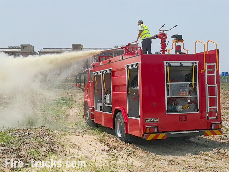 Fire truck with PF5-15 fixed dry powder monitor PF5-15 fixed dry powder monitor testing