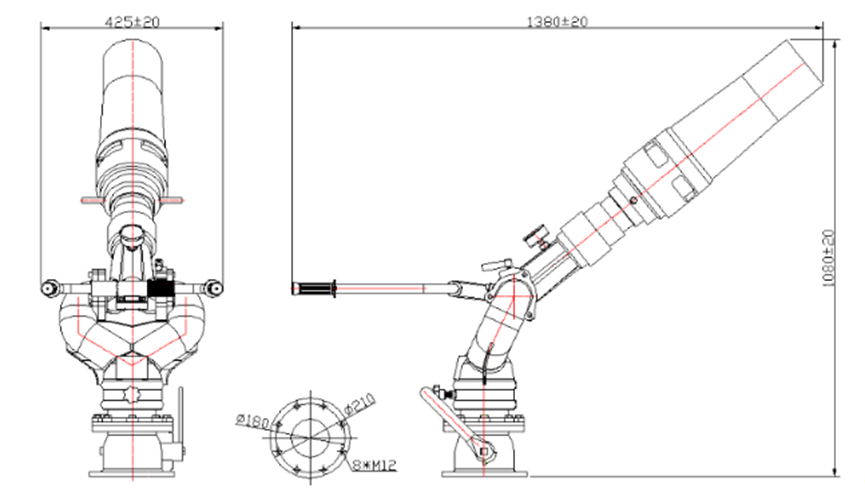 | Өрт мониторының моделі | Ағын | Қашықтық | Номиналды қысым | Дыбыс ауытқуы | Көлденең айналу | Салмақ |