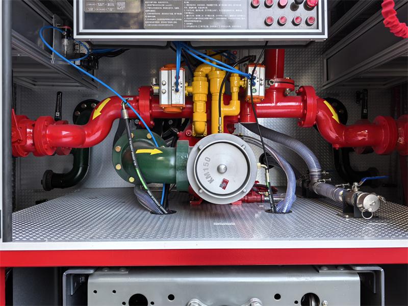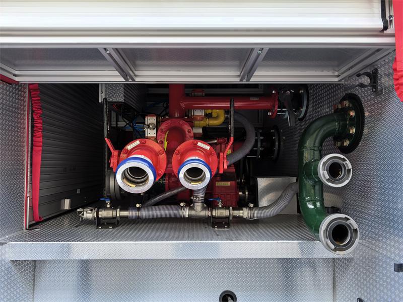 Артқы сорғы бөлмесі CB10/60-RS өрт сорғысымен және басқару панелімен жабдықталған. Шатырға PL8/48 өрт мониторы орнатылған, ол ұзақ қашықтықты, кең қамтуды және реттелетін бұрышты ұсынады. Бұл өрт сөндіру-құтқару көліктері өрт және құтқару функцияларын біріктіреді және мұнай өрттері сияқты В класты өрттерді сөндіруге ерекше шебер, бұл оны қалалық және өнеркәсіптік қауіпсіздікті қамтамасыз етудің негізгі құралына айналдырады.