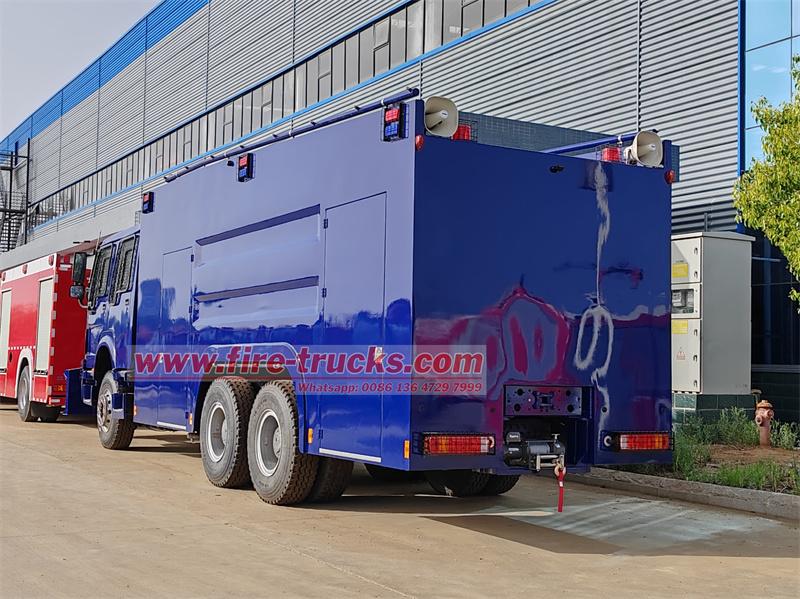 ★ Төбесі мен шассиі автокөліктің корпусы мен түбіндегі өрт ошақтарын сөндіре алатын автоматты спринклерлі өрт сөндіру жүйесімен жабдықталған, көп қысымды көбікті өрт сөндіруге арналған саптамалармен жабдықталған;