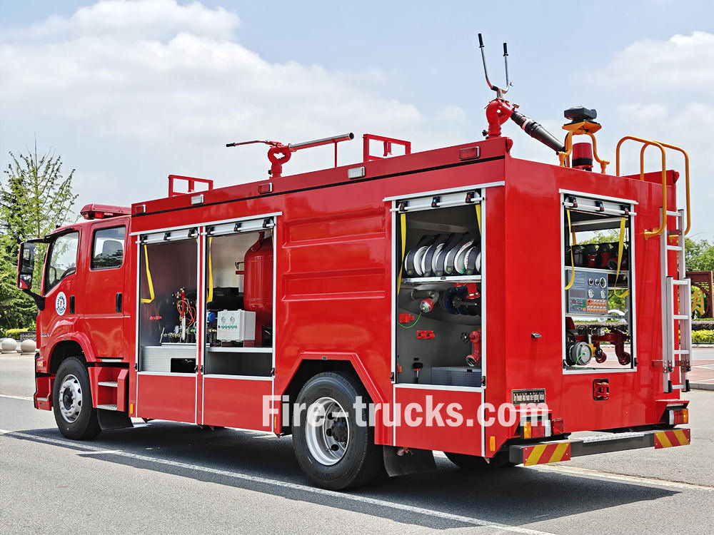 The Isuzu 4X GIGA dry powder fire truck is a specialized vehicle designed for fire fighting and emergency rescue, integrating water supply, fire extinguishing, and disaster relief functions.