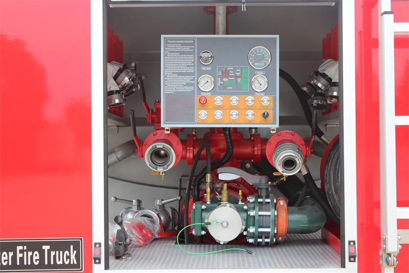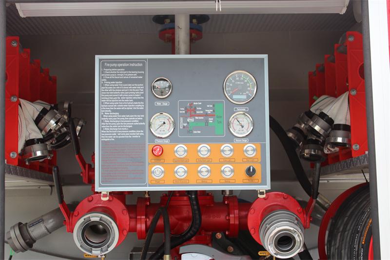 Басқару тақтасы: Сорғы бөлмесінде орналасқан ол су деңгейінің көрсеткішін, манометрді, вакуумометрді, тахометрді, авариялық тежегішті, жабдық бөлмесінің жарығын, сорғы бөлмесінің жарығын, бүйірлік шамды, артқы шамды, толтырғышты, негізгі қуат қосқышын, электронды дроссельді және басқа түймелерді біріктіреді; өрт сорғысының жұмыс нұсқаулары, су резервуарының құбырларының схемасы және т.б. Интерфейс интуитивті болып табылады, бұл нақты уақытта бақылауды және өрт сөндірушілердің тиісті түймелердің жұмысын жеңілдетеді.