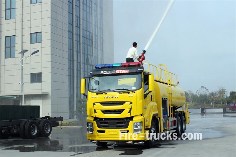 Isuzu 12000L өрт сөндіруге арналған спринклер көлігі доңғалақ базасы 4650+1370 мм Isuzu FVZ GIGA 6X4 шассиін пайдаланады. Ол Isuzu 6HK1-TCG60 қозғалтқышымен және FAST 9 жылдамдықты беріліс қорабымен жабдықталған. Қондырманың алдыңғы жағында CB10/60-RS өрт сорғысы және басқару панелі бар сорғы үйі орналасқан. Сорғы үйінің артында көлемі 12 текше метр көміртекті болаттан жасалған су ыдысы орналасқан. Артқы жағында құралдар қорабы, бүйірлік спринклерлер, резервуардың артқы жағындағы баспалдақ, деңгей өлшегіш, оң жақ спринклер бастиектері, алынбалы үстіңгі қоршау және PS8/50W өрт мониторы бар жұмыс платформасы бар.