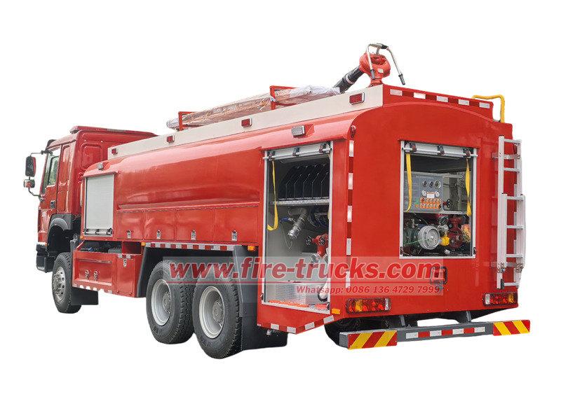 HOWO 6×6 су/көбік өрт сөндіру машинасы — Sinotruk компаниясының 6×6 толық жетекті шассиінде құрастырылған, ойлы-қырлы жерлерге арналған жоғары өнімді жол талғамайтын өрт сөндіру көлігі. Ол CB10/60 өрт сорғысымен және ұзақ қашықтыққа проекциясы және 360° айналуы бар PL8/48 қос мақсатты өрт мониторымен жабдықталған 7 000 л су мен 2 000 л көбікті тасымалдайды. Ұтымды реттелген жабдық бөлімдері және пайдаланушыға ыңғайлы басқару жүйесі тиімділік пен техникалық қызмет көрсетудің қарапайымдылығын қамтамасыз етеді. Үлкен сұйықтық сыйымдылығымен, тамаша ұтқырлығымен және сенімділігімен ол мұнай өрттерімен және жалпы өрттермен күресу үшін өте қолайлы, бұл оны полицияның өрт сөндіру бригадаларына, өнеркәсіптік зауыттарға, қауымдастықтарға және порттарға жарамды етеді.